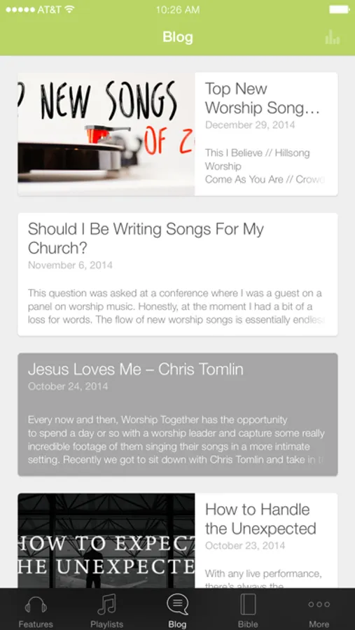 The Worship Together app is a tool for worship leaders. From new song discovery, to exclusive acoustic performances, to free transposable charts and lead sheets, we want equip worship leaders and churches with the resources they need to lead their worship teams and congregations. Search our database of thousands of songs to find lyrics, audio streams, videos, and scripture references indexed by tempo, theme, genre, tag, and writer.