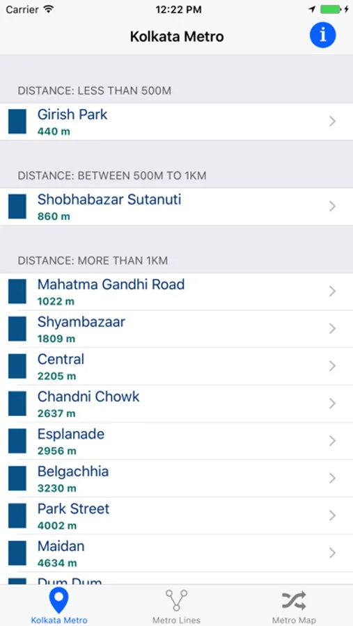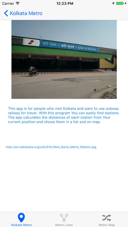 Это программа предназначена для тех, кто в Калькутта хочет пользоваться Метро в качестве транспортного средства. С помощью программы легко найти ближайшую станцию Метро. Программа определит расстояние до ближайших станций Метро по отношению к точке нахождения и покажет их вам на карте и в виде списка.