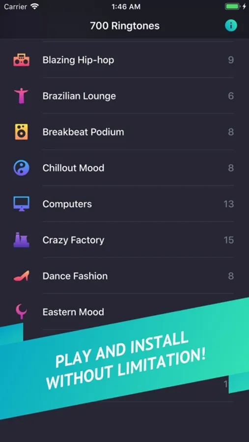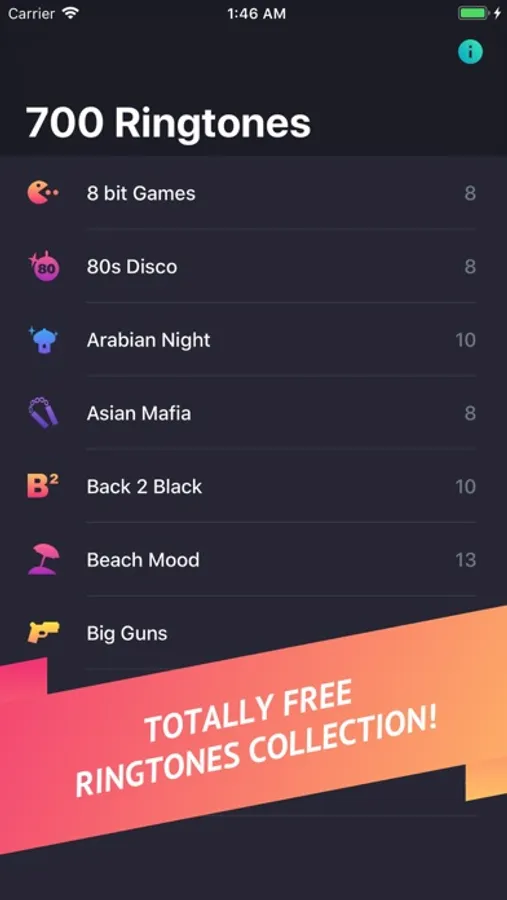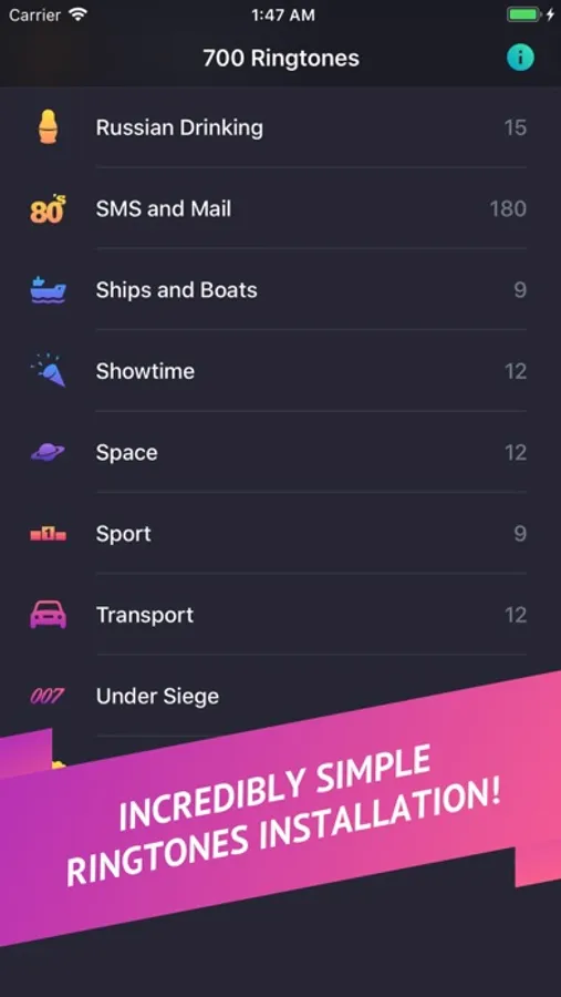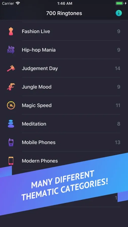 700 Ringtones is an excellent collection of ringtones specifically prepared by professional composers to create the highest quality with an exceptional tone. The great choice of music and sounds, split in to 48 subject categories, won’t fail to impress even the most hardened critic.