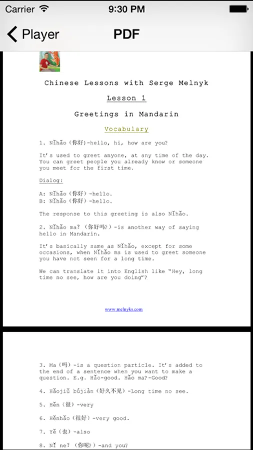 Each lesson in this course comes with a complete PDF transcript in simplified and traditional Chinese characters, and additional audio dialogues ( several extra dialogues for each lesson ).