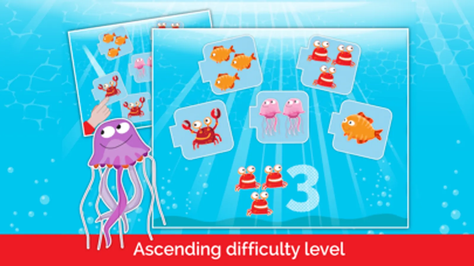 This game is intended for toddlers aged 3+. The game presents 12 boards each focused on developing a set of basic concepts such as size, colors, numbers and patterns using everyday objects from the child's world such as clothes, food and many more.