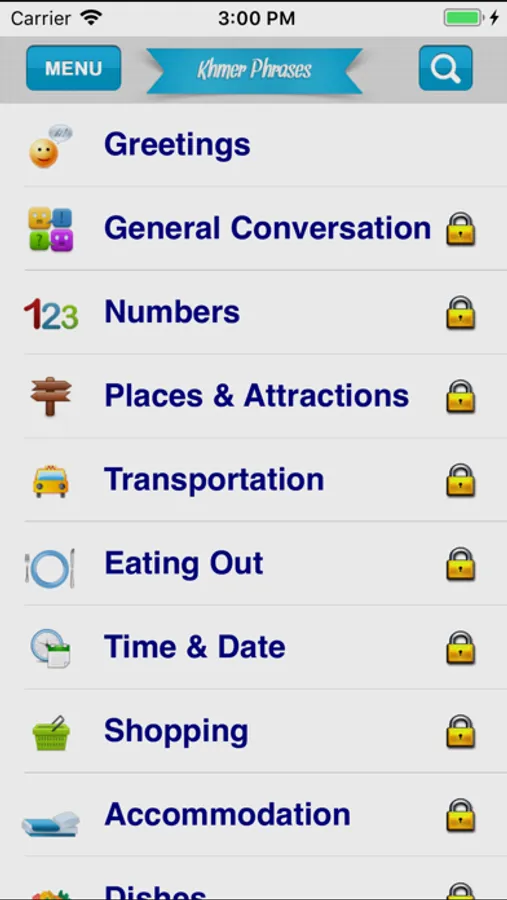 SpeakKhmer provides a large collection of commonly used daily phrases in Khmer with nearly 1000 phrases divided into 21 categories.