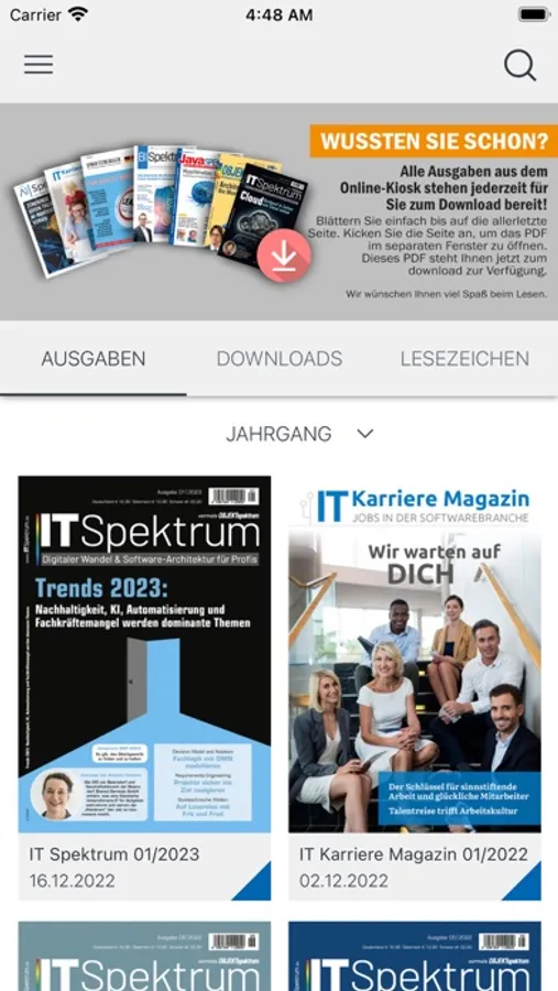 Der Preis für eine digitale Einzelausgabe liegt bei € 11,99, das Jahresabonnement bei € 59,99. Im Rahmen Ihres Abonnements erhalten Sie zusätzlich unregelmäßig erscheinende Sonderausgaben zu aktuellen Themen (z. B. Software Testing, IT Karriere Magazin).