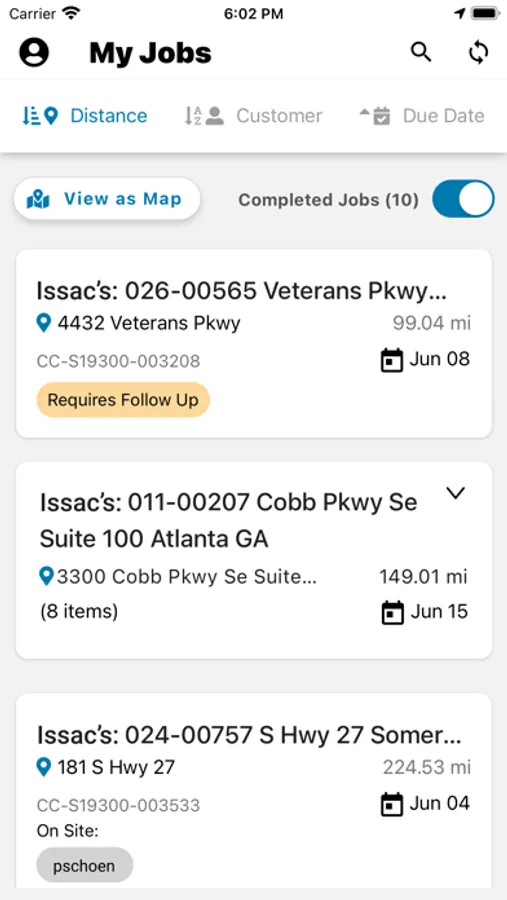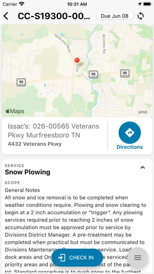 Using your location settings, the app serves up the PO Numbers that are available to you and allows you to check in and out easily.
