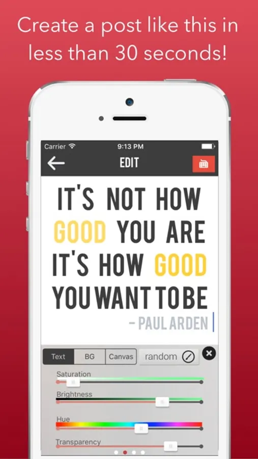 - When you tap on a text which already has a color, adjustment sliders will automatically snap to their correct values so you don't have to re-do all the hard work.