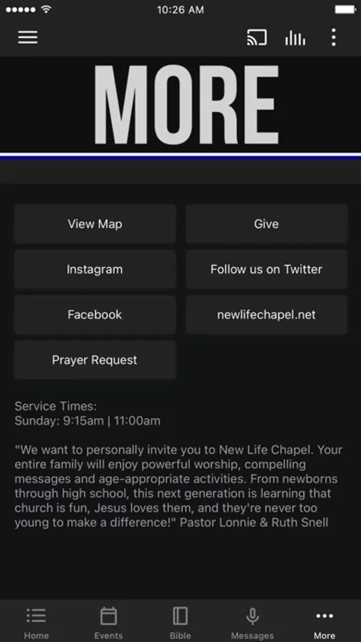 The New Life Chapel app was developed with the Subsplash App Platform.