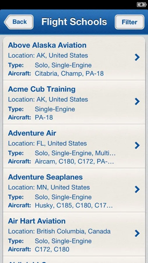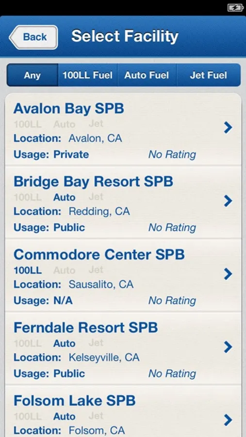 - Search for fuel on water by type (100LL, Auto, Jet)