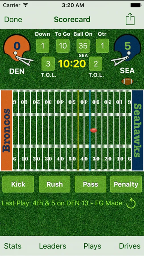 - Calculates time of possession for drives