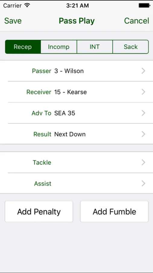 - Large buttons to enter plays