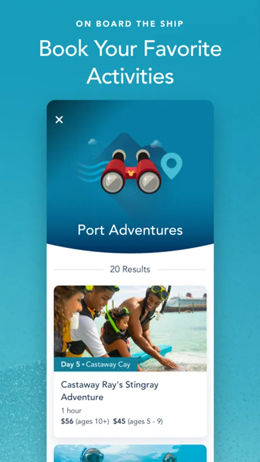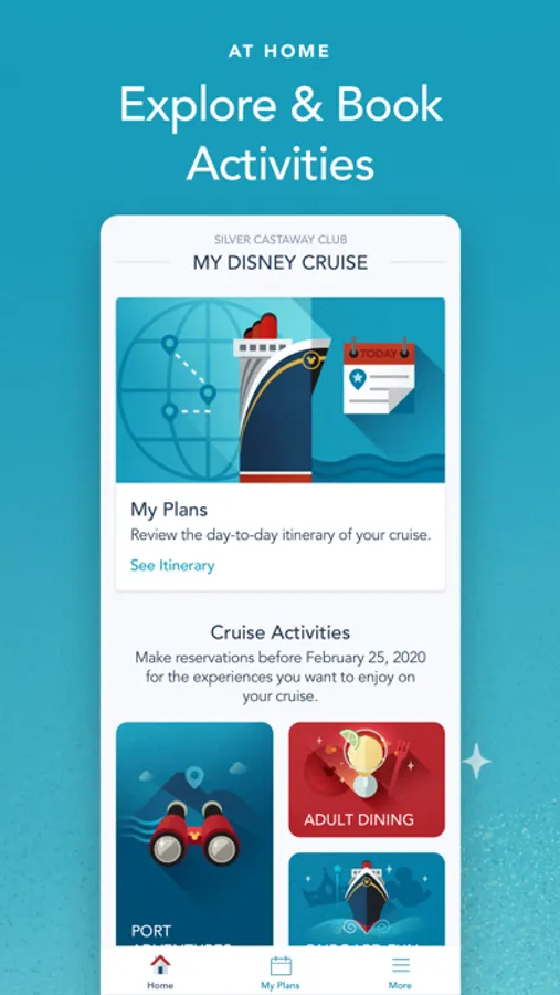 · View booked activities, including Port Adventures, Adult Dining, Onboard Fun, Spa & Fitness or Nursery.