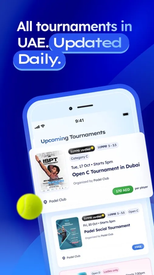 Available to padel tennis communities in UAE, Pakistan, Bahrain, Saudi Arabia, Egypt, Jordan, Kuwait and Qatar. More countries soon!