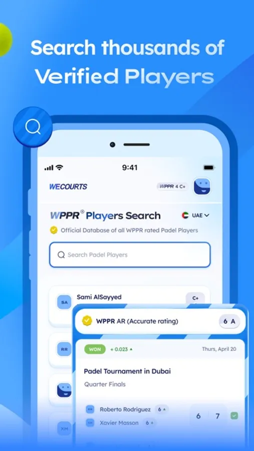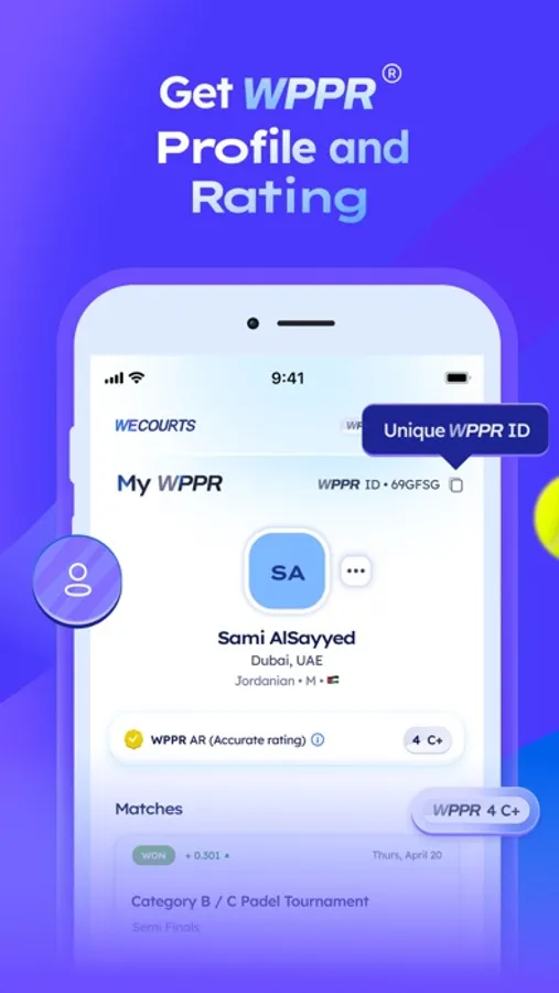 Signup to claim your WPPR profile, the first Padel Player Rating system, built by the community for the community. WPPR records your matches and scores ensuring fair play for everyone. You'll also get access to WPPR verified tournaments and much more.