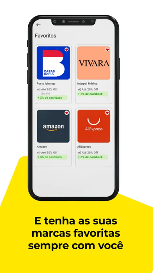 Navegue por um cardápio de ofertas com marcas parceiras de diversos segmentos.