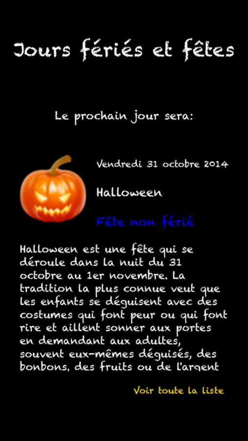 Au lancement, vous pourrez voir quel est la prochaine date avec un descriptif du jour.