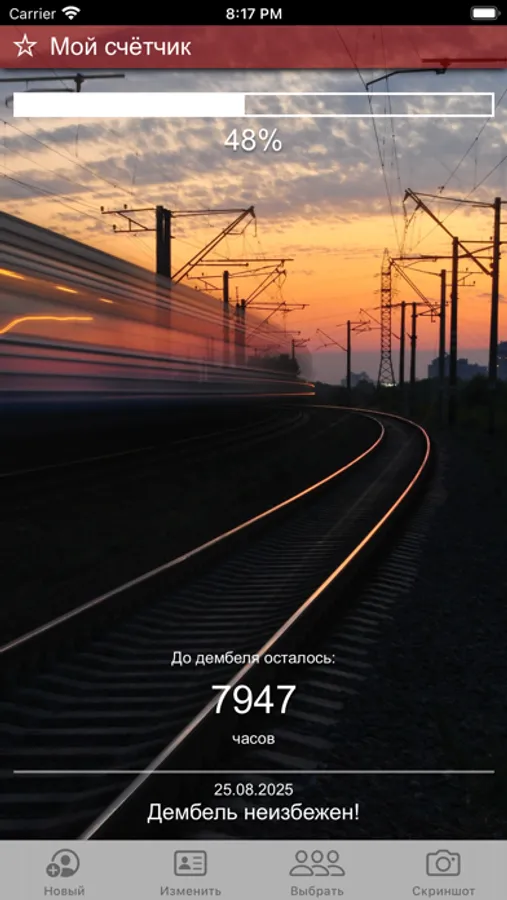 При наступлении дембеля отображается информация об общем количестве запусков приложения.