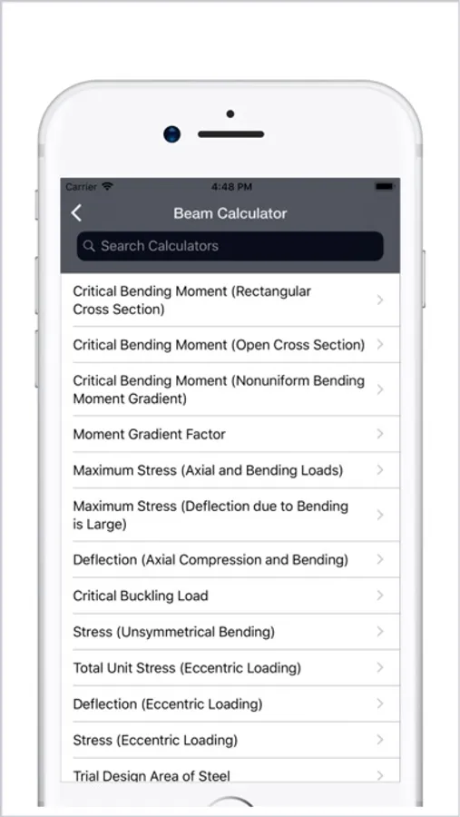 TIMBER :• Area of Section (Rectangular and Square Beam) • Moment of Inertia (Rectangular and Square Beam) • Distance from Axis to Extremities of Section (Rectangular and Square Beam) • Radius of Gyration (Rectangular and Square Beam) • Section Modulus (Rectangular and Square Beam) • Maximum Fiber Stress (Rectangular Timber Beam) • Maximum Fiber Stress using Section Modulus (Rectangular Timber Beam) • Horizontal Shearing Stress (Rectangular Timber Beam) • Modified Total End Shear (Concentrated Loads) and more up to 55 Calculators.
