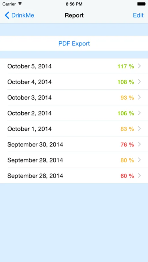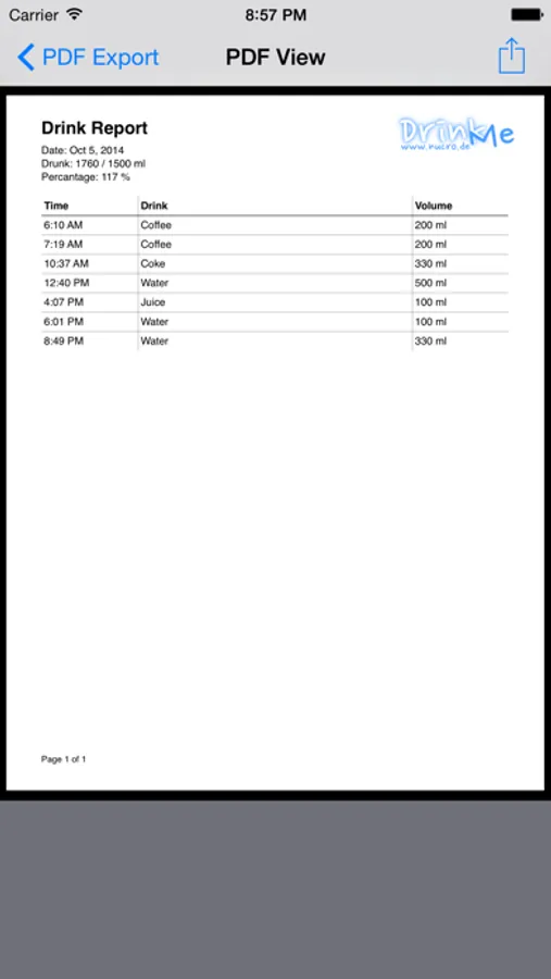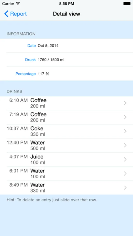 All your inputs will be stored with chronological in the report view. So e.g. you can easily check up whether you drink enough and you can see how much you have drunk on which day.