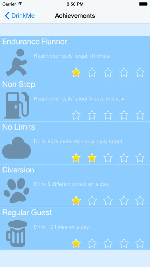 You will be motivated with several Achievements you can unlock. For example there are Achievements whose you have to drink enough in multiple days in a row. Will you gain every star?