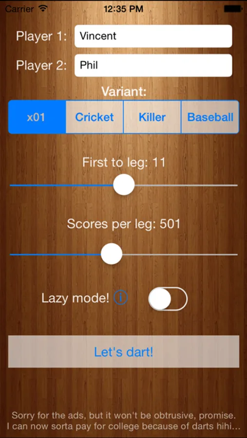 Free and easy to use; This app simply does what it is supposed to do: keeping your darts scores.
