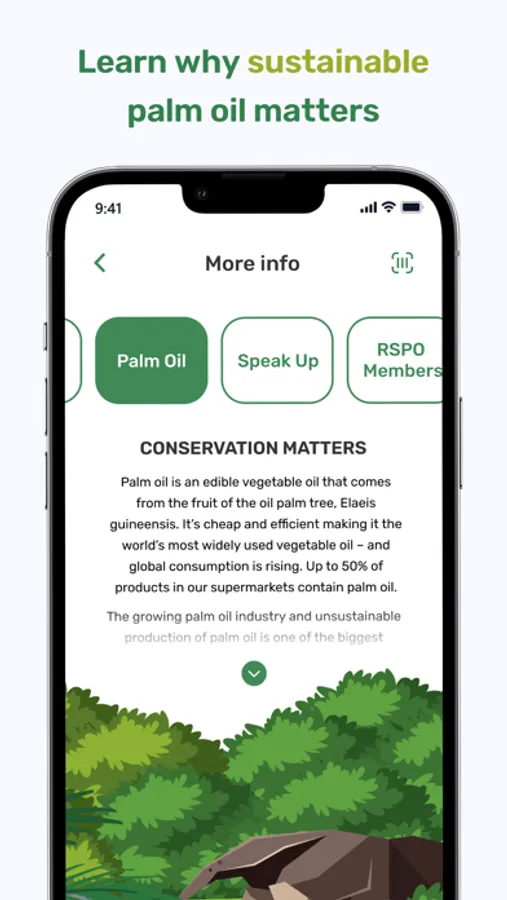 Now shop with the confidence that you are helping save tropical species and their homes from deforestation. Use PalmOil Scan, produced in collaboration with the World Association of Zoos and Aquariums (WAZA) and led by top conservation-minded zoos around the world, to check if the product you are about to purchase is from a company committed to sourcing sustainable palm oil. Our database contains products from 1000’s of brands and 100's of consumer product manufacturers to reveal how committed they are to certified sustainable palm oil.