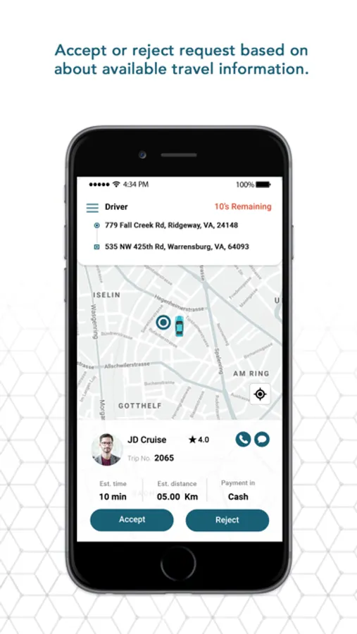The Driver app allows drivers to accept, book, view, and manage trips received daily and weekly from Trips.