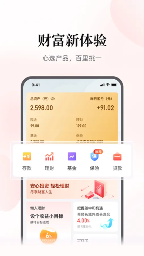 五、保障强:账户安全锁、生物识别、短信验证码等多项措施保证资金安全,为用户带来更为安全便捷的生活金融服务。