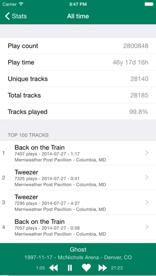 Big thanks to phish.net, the Mockingbird Foundation and phishtracks.com for making this data available for use!