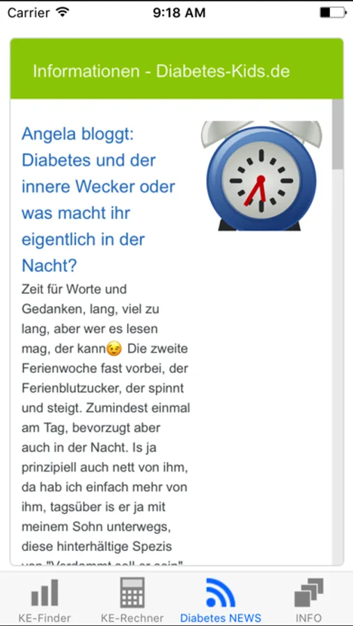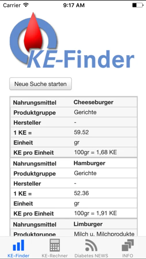 Die Kohlenhydrateinheiten-App ist eine mobile Hilfe für die Einschätzung des Kohlenhydratgehalts der Nahrungsmittel, die einen Anhaltspunkt für die Insulinzufuhr geben soll. Eine Kohlenhydrateinheit wird im Allgemeinen als die Menge eines Nahrungsmittels definiert, die 10 Gramm an verdaulichen und damit blutzuckerwirksamen Kohlenhydraten in unterschiedlicher Zucker- und Stärkeform enthält. Das Programm soll das Mitführen eines Kohlenhydratbuchs ersetzen. Die App basiert auf einer Datenbank mit mehr als 9.500 Grundnahrungsmittel und industriell hergestellten Lebensmitteln. Der Nutzer kann die Nahrungsmittel entweder über die Produktgruppe, den Hersteller oder auch über eine Volltextsuche ermitteln. Die KE werden, wenn nicht anderes angegeben, pro 100 Gramm angegeben.