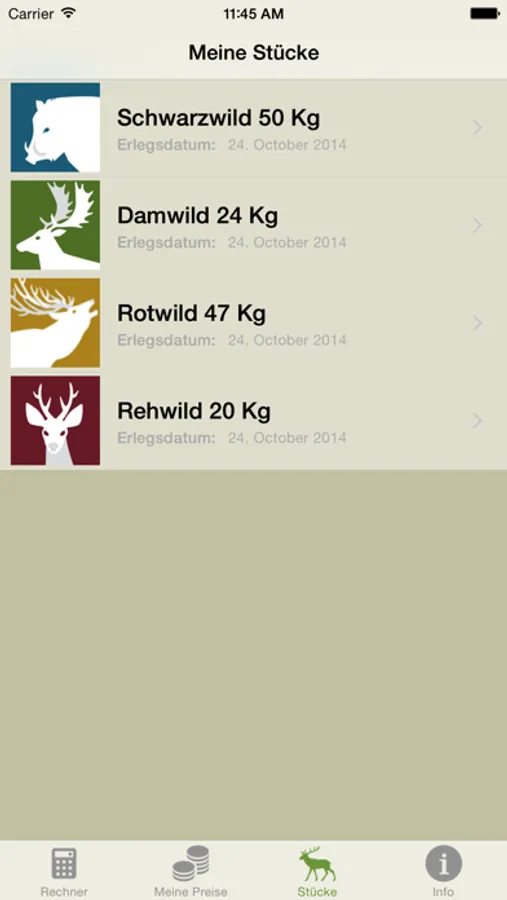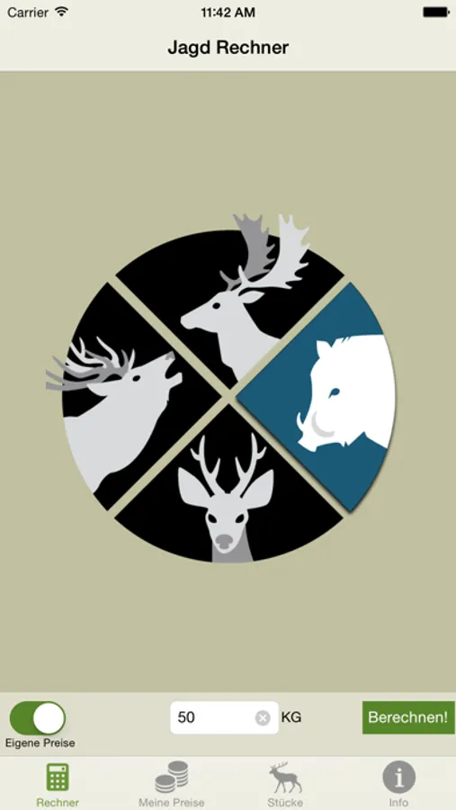 Die App für Jäger: schnell und einfach Gewichtsanteile und Vermarktungspreise für Schalenwild berechnen.