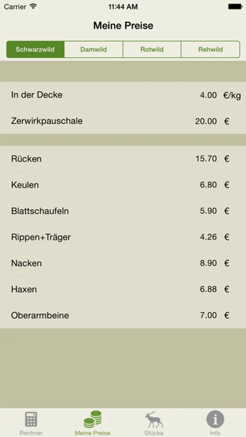 - Genaue Berechnung in Euro für die unterschiedlichen Wildbretstücke