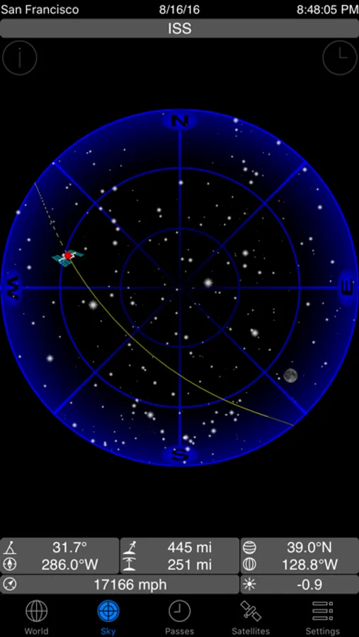Real time tracking of the International Space Station with pass predictions for when and where to actually see the space station pass overhead.