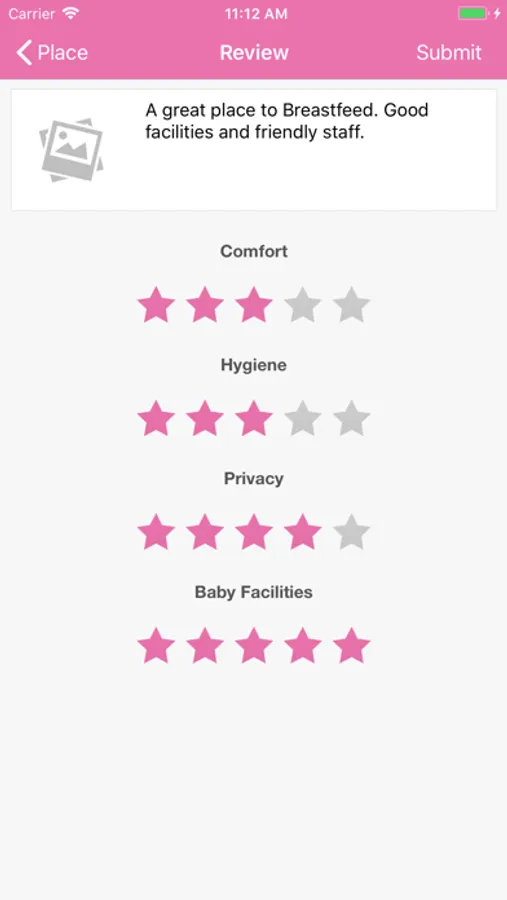 We'll show you on a handy map all of the places near you that have been reviewed by other mothers. We've also carefully designed FeedFinder so that it can be used one-handed as much as possible so that you can even be adding a review of a breastfeeding place as you breastfeed your little one.