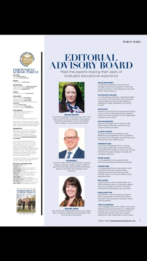 With separate editions for junior and senior schools, Independent School Parent is the only magazine to address the issues that really matter to parents who have chosen to educate their children privately.