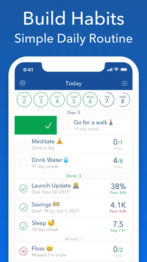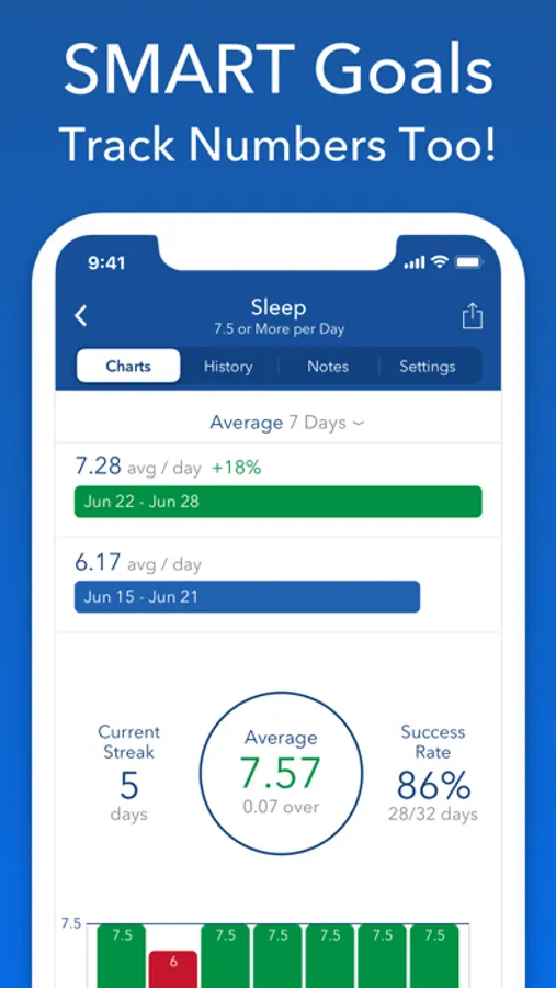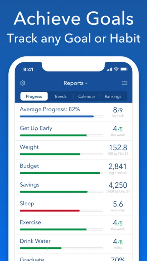 Track all your Goals & Habits in one flexible app. With Strides you can track anything - good or bad habits and SMART goals - with reminders to hold you accountable and charts to keep you motivated.