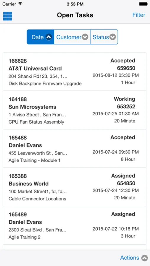 Oracle Mobile Field Service for Mobile Devices allows field service technicians to remotely access customer, product, service request and task related information. Technicians can continue to update their tasks, capture materials, time, expense details, access inventory levels, return, transfer and request parts regardless of the internet connectivity and synchronize when they are online.