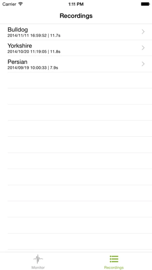 - Recorded sound in seconds