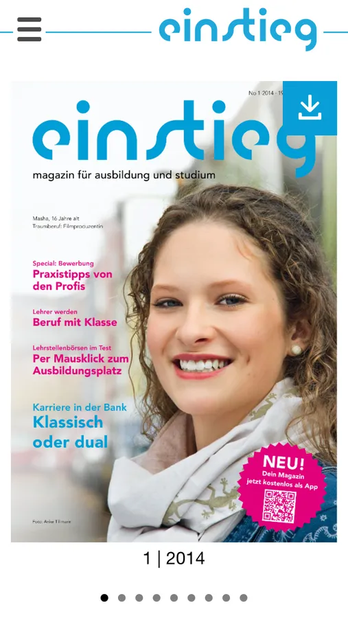 Diese App bringt das Einstieg Magazin kostenlos als E-Paper aufs Smartphone oder Tablet. Sie enthält die jeweils aktuelle und ein Archiv älterer Ausgaben. User können die Ausgaben entweder herunterladen und anschließend offline lesen oder direkt online schmökern. Für die App werden die Inhalte der Print-Ausgabe digital ergänzt, zum Beispiel durch Videos und weiterführende Links.