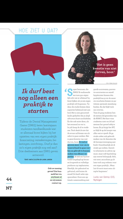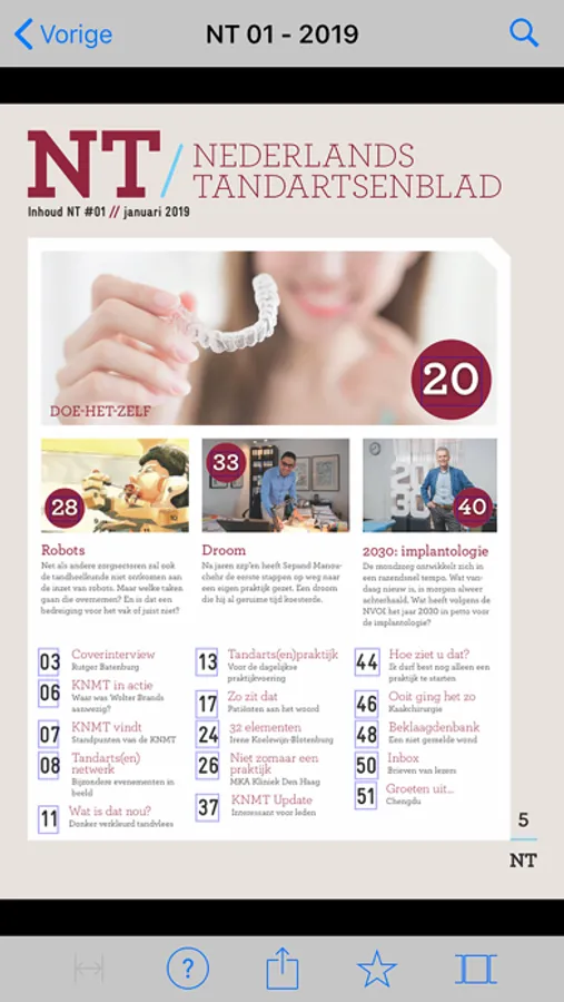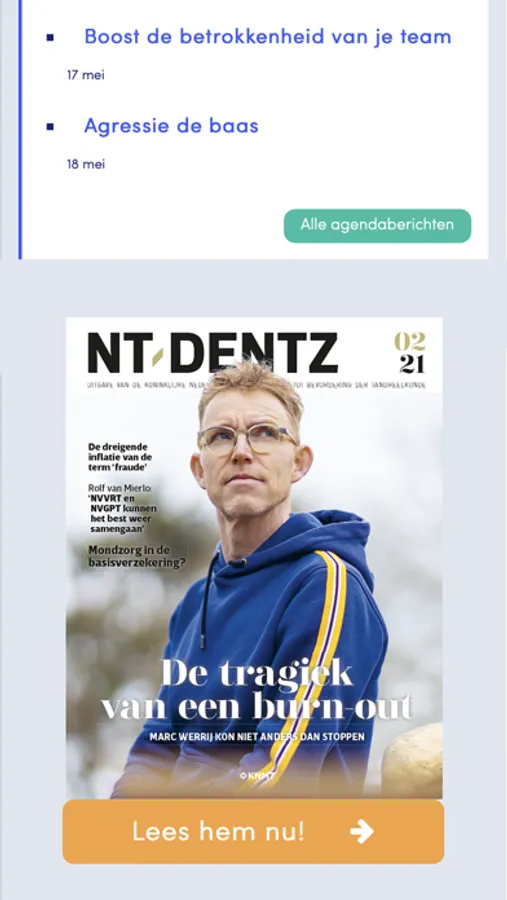 De KNMT-app biedt het laatste nieuws en informatie over de evenementen van de Koninklijke Nederlandse Maatschappij tot bevordering der Tandheelkunde (KNMT). Ook vind je de nieuwste vacatures in de mondzorg en advertenties van door collega's aangeboden spullen. Via de KNMT-app lees je ook NT/Dentz: achtergronden, verdieping, duiding, vakkennis en interviews. KNMT-leden en NT/Dentz-abonnees ontvangen NT/Dentz elke maand gratis op hun tablet en smartphone. Via de app ontvang je een pushbericht bij het verschijnen van een nieuw nummer.