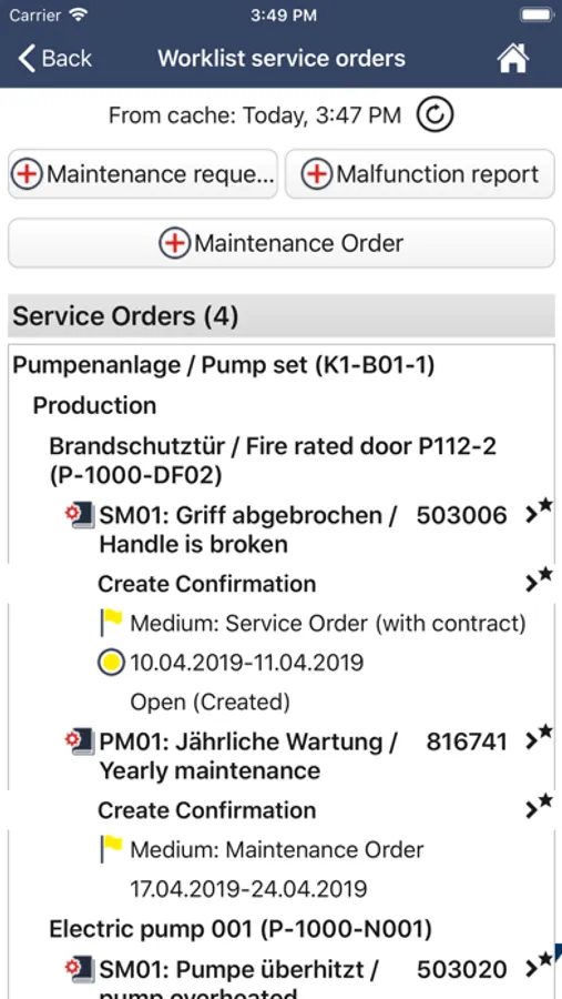 • Plant maintenance and customer service (such as confirmations of service orders)