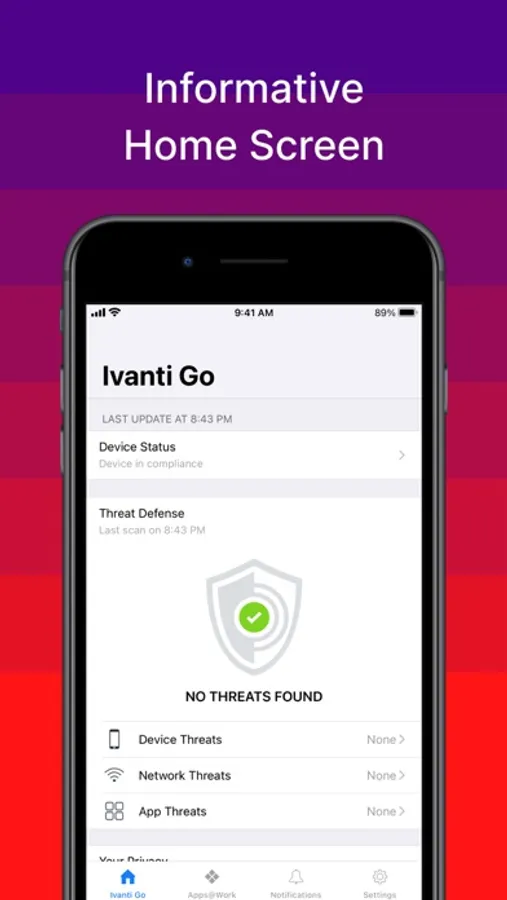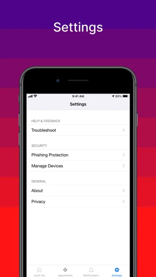 Ivanti Go securely connects your iOS device to your company network so that you can easily access email and other work resources.