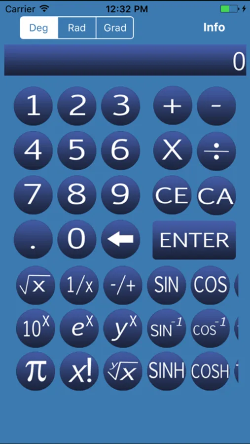 Trigonometric functions also computed in Degrees, Radians, or Gradians.