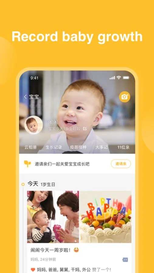 The photos and videos of your baby can be uploaded intelligently. You can invite family members to join the safe and private space, where they can interact and share with each other.