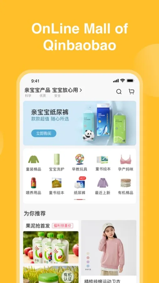 Following the principle of "science", "quality", and "safety", the Qinbaobao provides diapers, tissue, feeding supplies, children's clothing and cotton products, wash care, toys, snacks and supplements for 0-6 years old infants and children. Thanks to our parenting experts and the first-rate supply chain, every baby and parent can enjoy high-quality, cost-effective products and services.