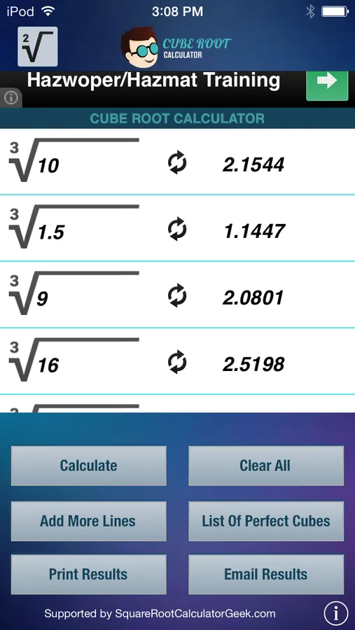 App also includes a free Easy to use Cube Root Calculator + Chart