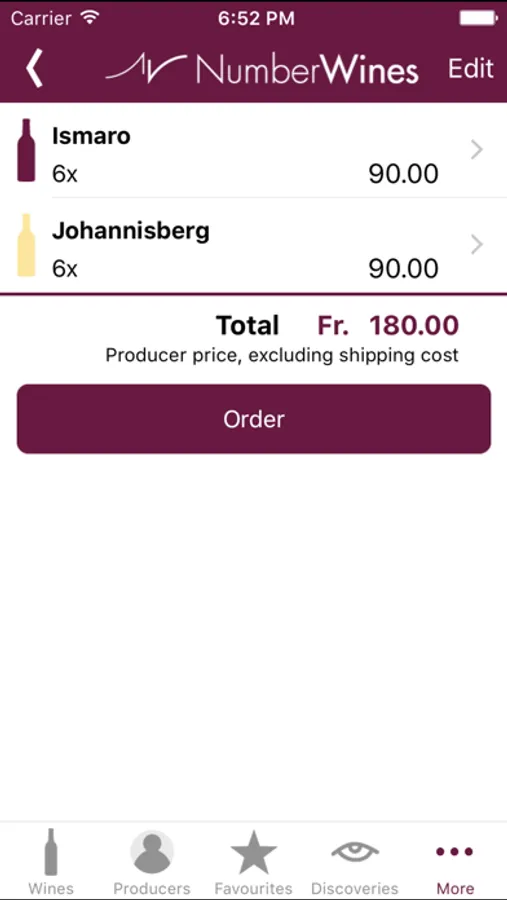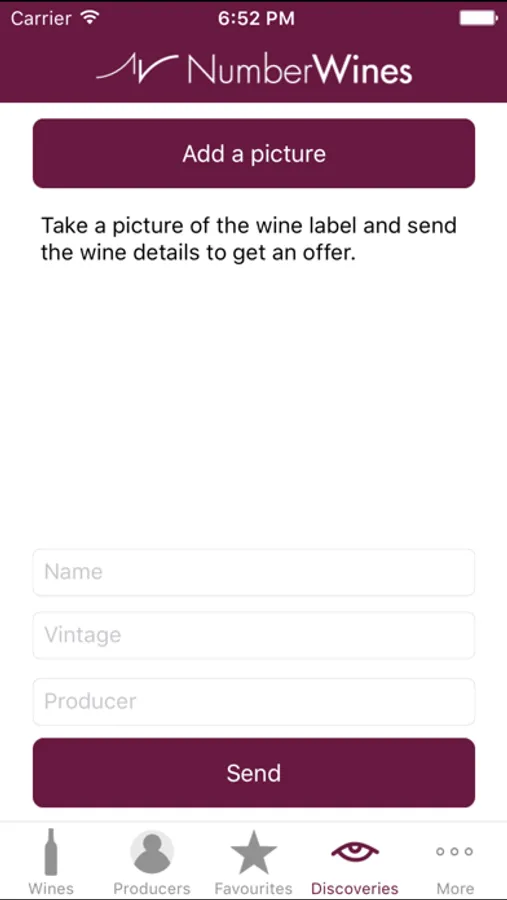 If your choice is not referenced yet, go to the Discoveries menu and take a picture of the wine label. We will get you an offer and you can then place an order.