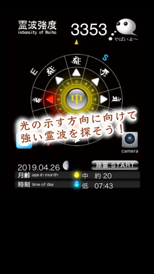 磁場、方位、時刻、月齢などから独自の計算で霊波を検出!