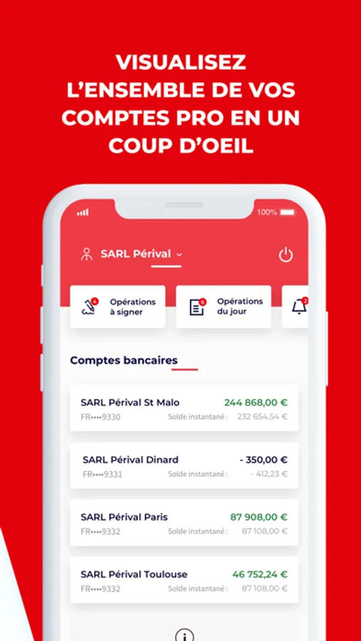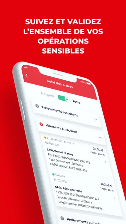 - Garder un œil depuis votre mobile sur l’état de l’ensemble de vos opérations et mouvements, et signer pour valider vos opérations sensibles.