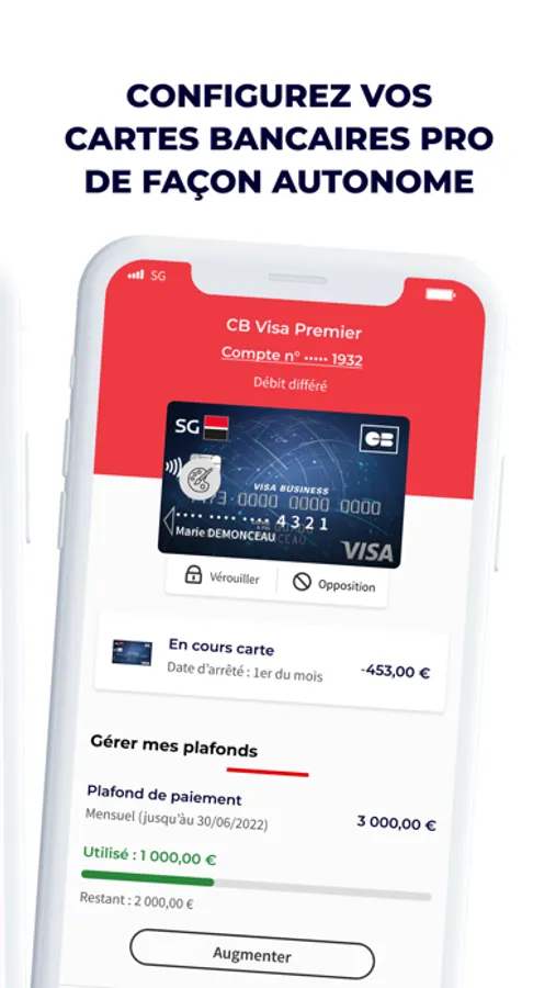 - Visualiser et configurer l’ensemble de vos cartes bancaires professionnelles de façon autonome :