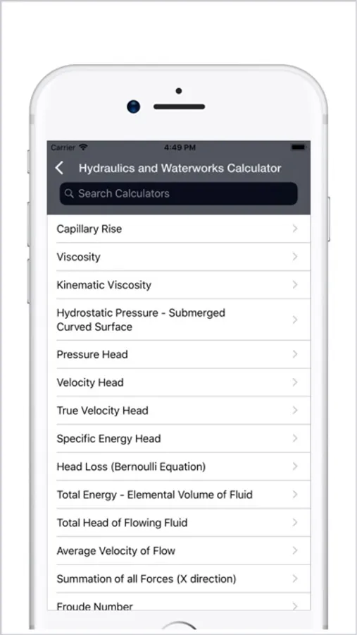 HYDRAULICS : • Capillary Rise • Viscosity • Kinematic Viscosity • Hydrostatic Pressure - Submerged Curved Surface • Pressure Head • Velocity Head • True Velocity Head • Specific Energy Head • Head Loss (Bernoulli Equation) • Total Energy - Elemental Volume of Fluid • Total Head of Flowing Fluid • Average Velocity of Flow and more up to 94 Calculators.