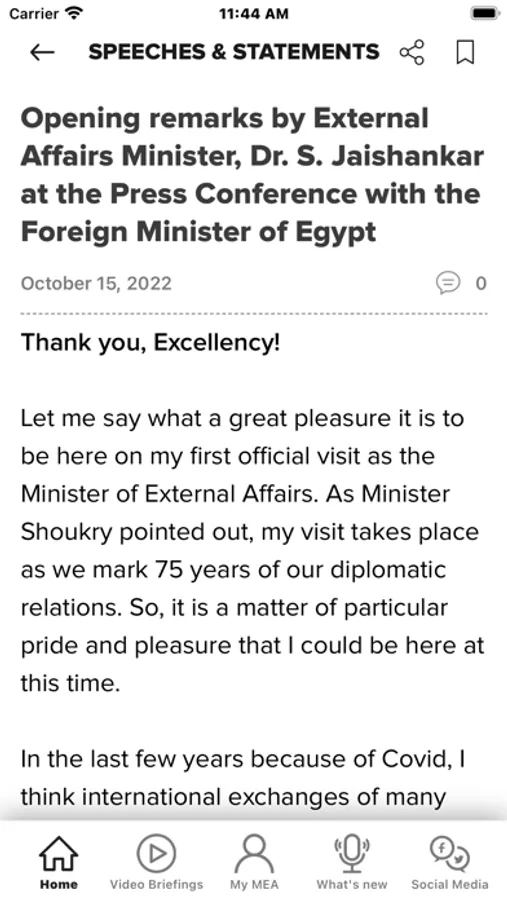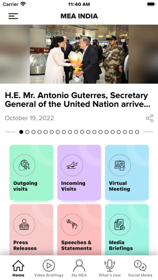 Mobile application for Ministry of External Affairs, Government of India(MEAIndia). It acts as single window source of all information related to Ministry's citizen centric services and outreach activities. The application is completely user oriented, intuitive and interactive with smart visuals/graphics.